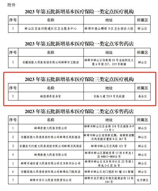 蚌埠城投康養(yǎng)中心成功獲批“2023年第五批新增基本醫(yī)療保險(xiǎn)三類定點(diǎn)醫(yī)療機(jī)構(gòu)。”